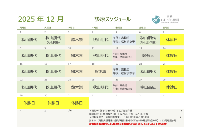 ※コンタクトレンズ装用歴のある方で当院にて初めてコンタクトレンズを処方される方もしくは度数変更希望の方は診療終了30分前まで
