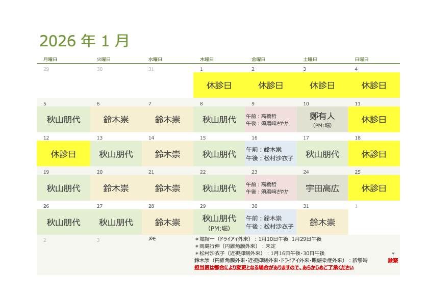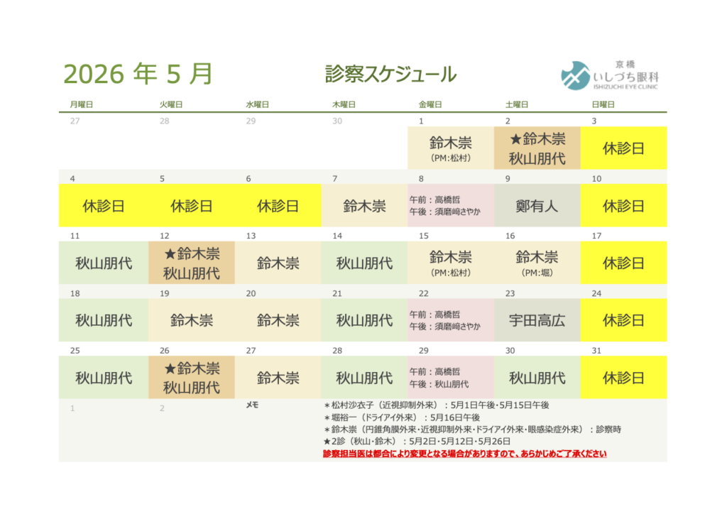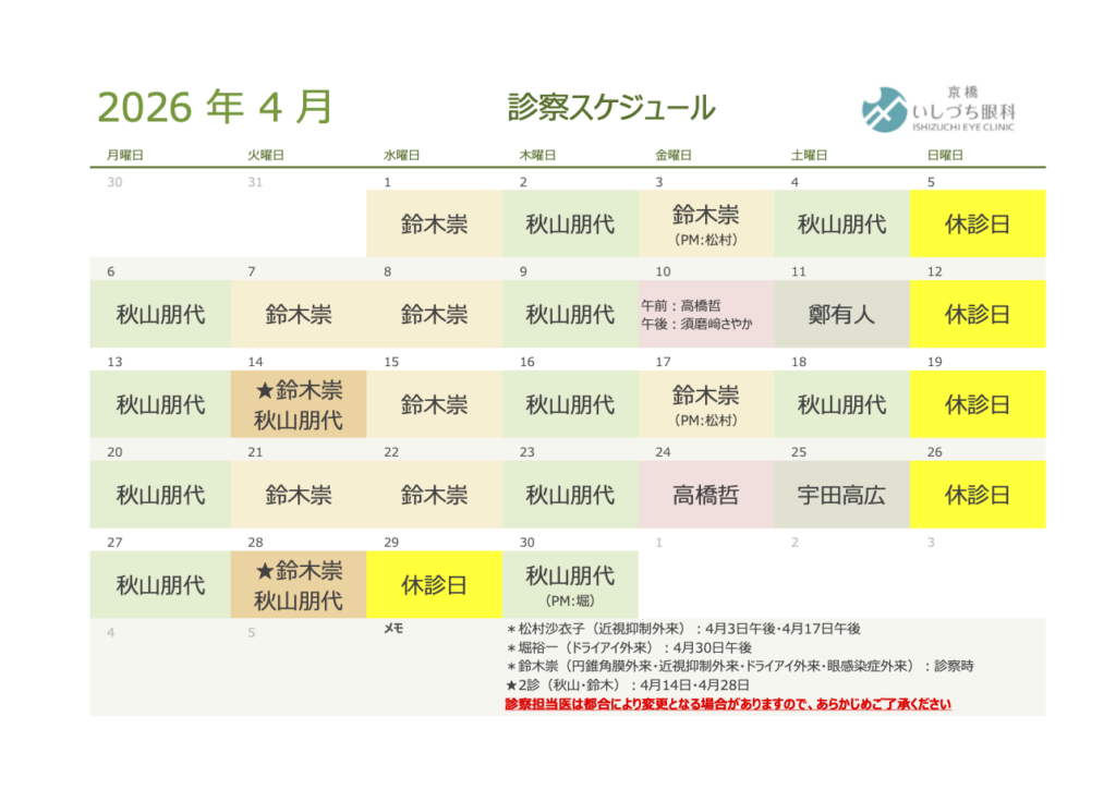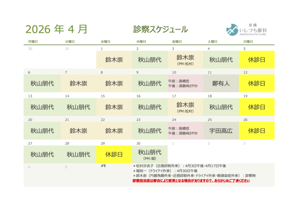 ※初めてコンタクトレンズを処方される方は診療終了1時間前まで