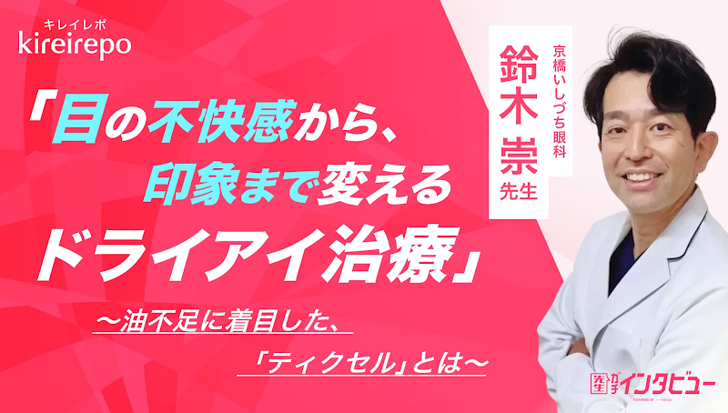 この度、美容医療(自由診療・審美歯科)のプラットフォーム「キレイレポ」に 鈴木 崇 先生の「『Tixel(ティクセル)』を用いたドライアイ治療について」の記事が掲載されました。