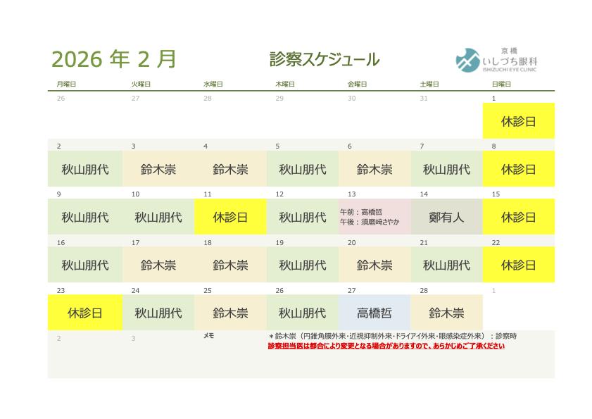 外来診療表